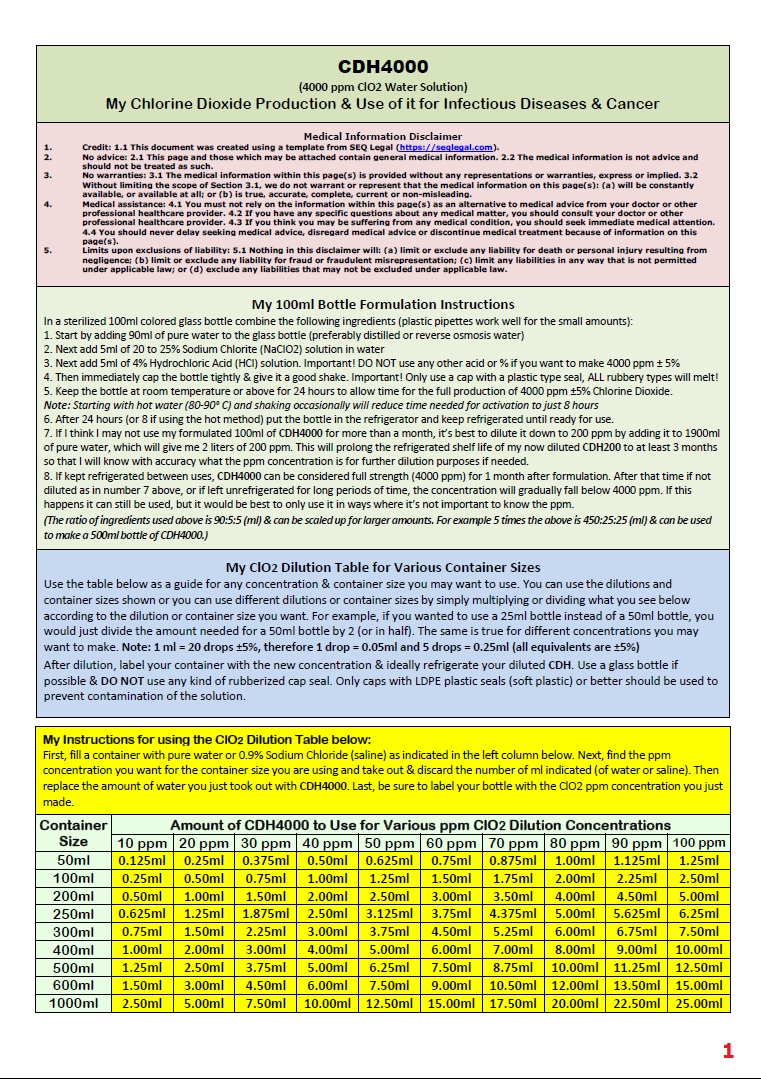 7. If I think I may not use my formulated 100ml of CDH4000 for more than a month, it’s best to dilute it down to 200 ppm by adding it to 1900ml of pure water, which will give me 2 liters of 200 ppm. This will prolong the refrigerated shelf life of my now diluted CDH200 to at least 3 months so that I will know with accuracy what the ppm concentration is for further dilution purposes if needed.
