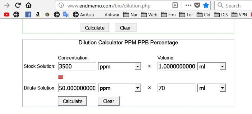 In the meantime, you could just make up a small amount of CDH the regular way which will give you a 3500ppm CDH and then add 1ml of it to 69ml of water (or IV solution) to get 70ml of 50ppm like this: