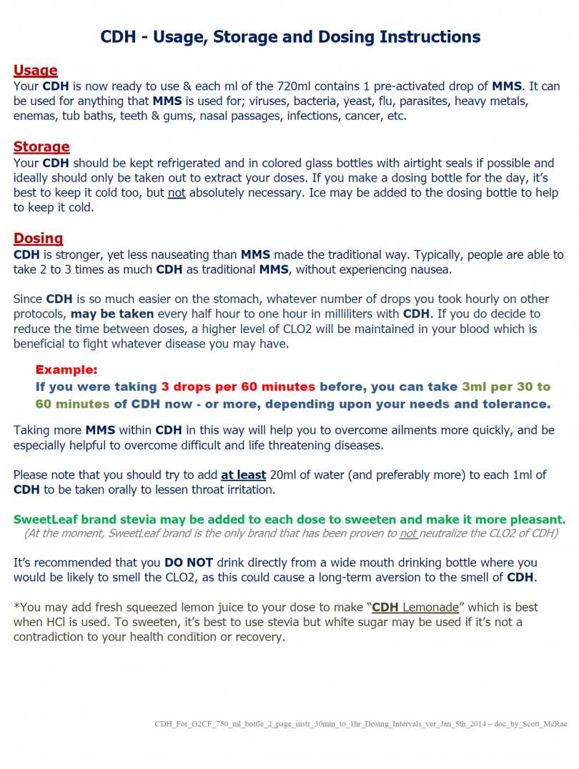 - Every ml of CDH contains 1 drop of MMS, so 1 drop of MMS = 1ml of CDH