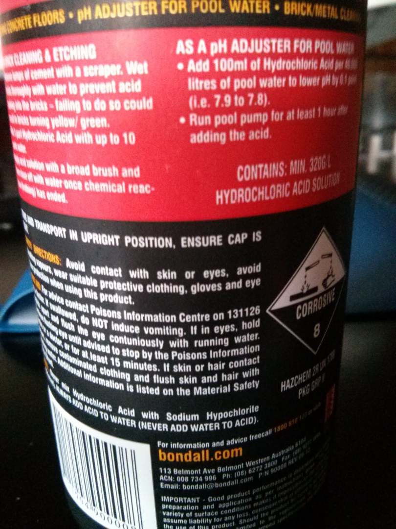 I decided to ditch the Hydrochloric Acid from the hardware store all together. I will purchase off a proper store at a later date.