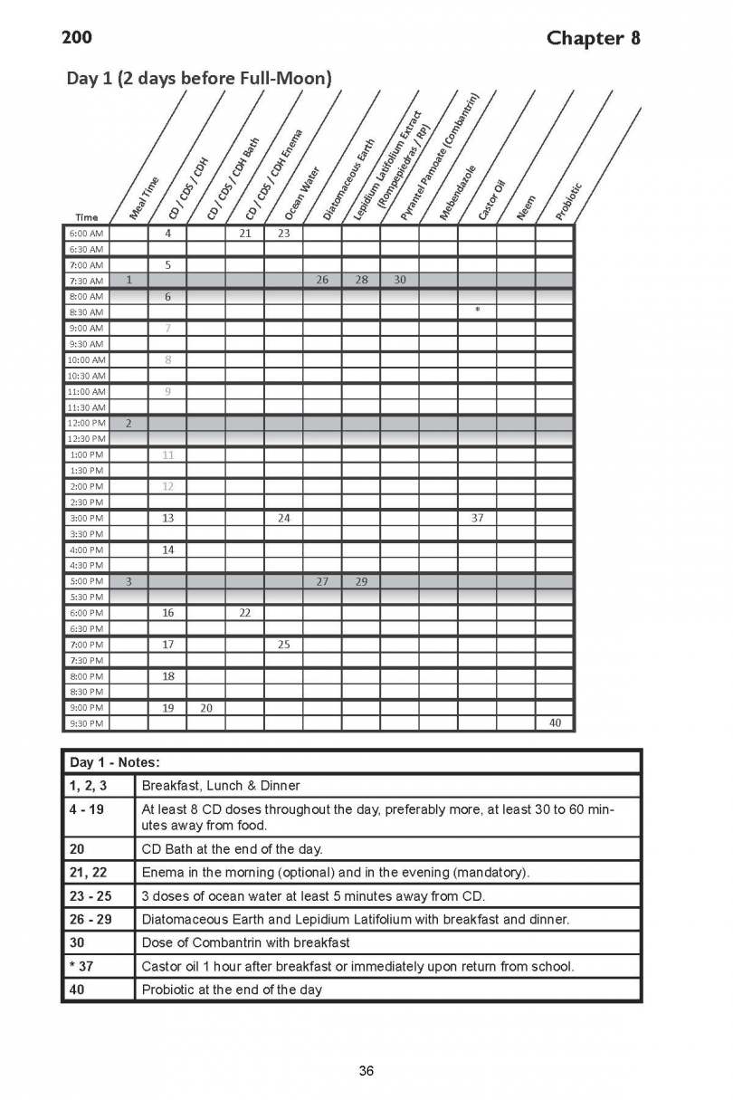 Taking MMS1/CDS/CDH is part of the PP which also includes enemas. Here is one of the daily charts that shows what to do every half hour. You may also want to refer to the complete autism protocol here .