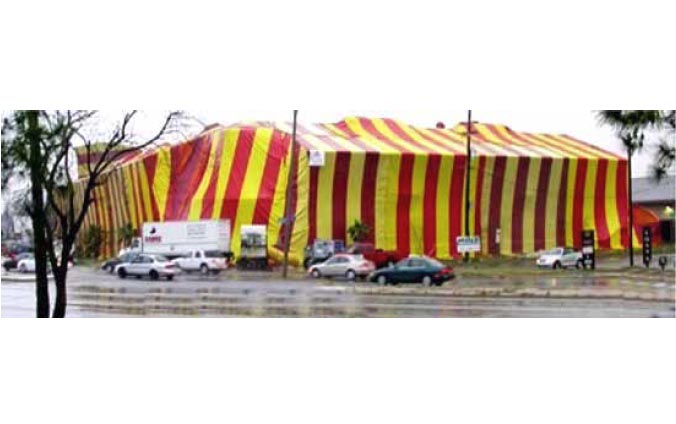 After Hurricane Katrina, a circus tent over 7 restaurants that are being fumigated with ClO2 gas for 3 days. The ClO2 removed all fungus, mold, insects, and odors. All fabrics and woodwork were unaffected.