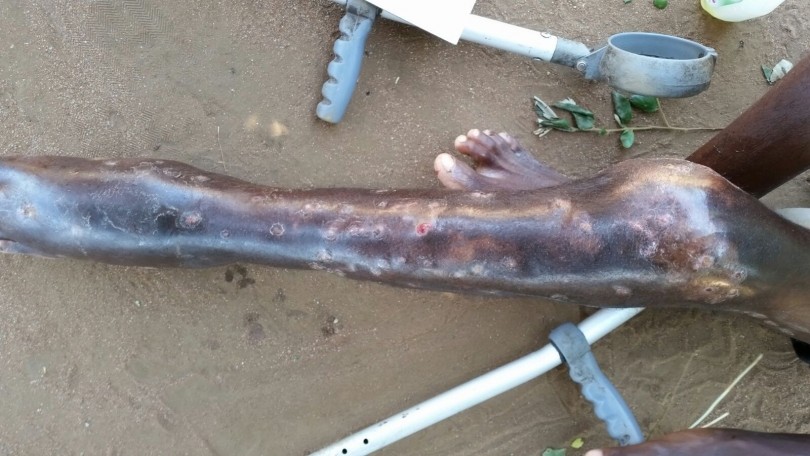 The foot is extremely swollen but the rest of the leg reduced to almost nothing