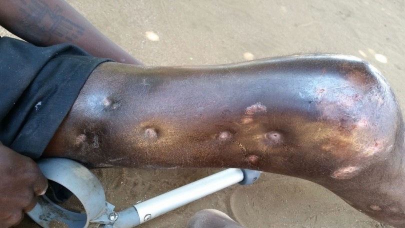 There are holes everywhere and pus and blood comes out.