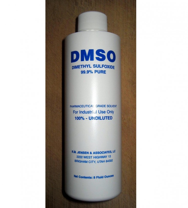 As you can see by looking at the photo of the bottle of DMSO, the purity is 99.9% and it is undiluted, meaning it has no added water. For our purposes, we usually dilute it to 70% or 50% DMSO to distilled water.