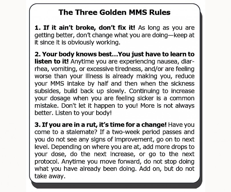 The 3 drop limit as called for in P1000 is not a goal - you may not need to take 3 drops per hour. I have heard of people recovering their health from stage 4 cancer using only 1 drop of MMS1 per hour, and even as low as 1/2 drop per hour. Again, listen to your body.