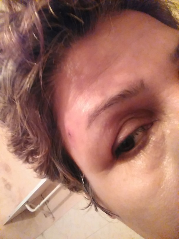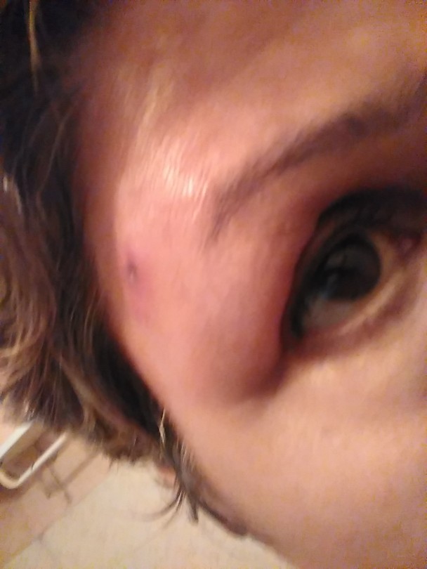 I guess you mean your right eyebrow is swollen? I really don't see anything.... as I cannot compare to the left eyebrow....