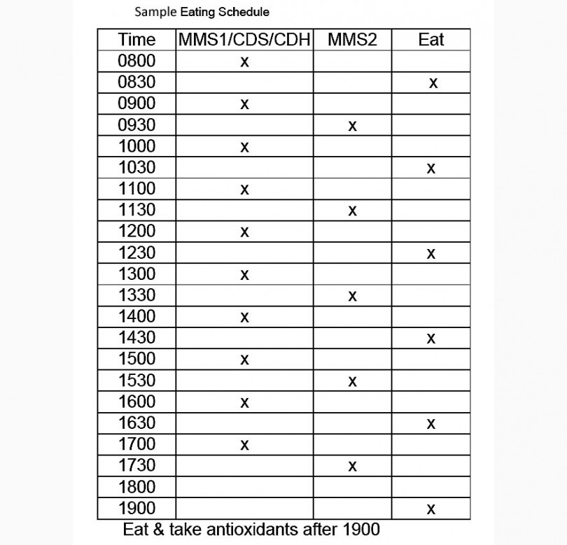 Remember to continue taking MMS1 and DMSO while taking MMS2, but not at the same time. Do not take MMS2 within 30 minutes of taking DMSO! Reading the warnings in the book. Only take DMSO with MMS1.