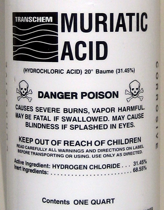 The clean HCL I have been buying says 37-38%. Who knows how accurate that is. Here is a photo of a bottle of Muriatic acid, a common not-clean type of HCL that can be