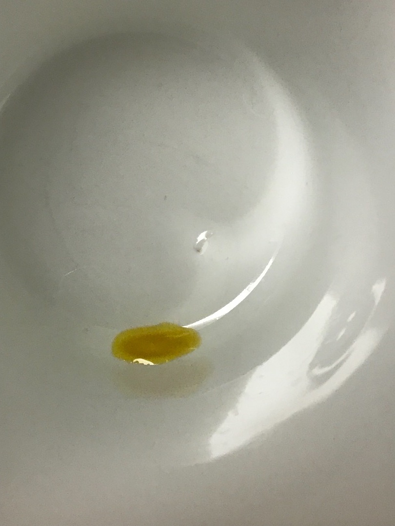 Terri I actually got really sick once so far and not to be gross but even when it came back up there it was that glowing neon yellow. I use all glass as well. I use a little eye dropper to stir it. The water turns slightly yellow also. I usually plug my nose when I drink it. At only 2 drops it was very strong. Now I’m doing 1/2 drops every hour regardless of whether I’ve eaten or not before working up again. I can’t go 8 hours without eating. I’m constantly trying to figure out what works best for me. It’s quite the science experiment. Unlike anything I’ve tried.