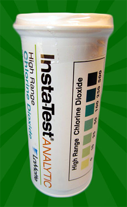 The LaMotte High-range Chlorine Dioxide test strips are available on Amazon. Follow the directions on the container.