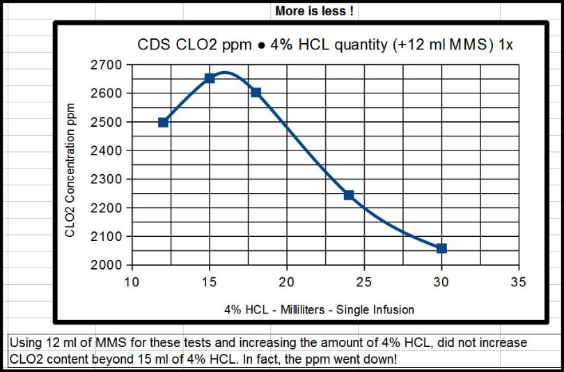 CLO2 wrote: You might find this chart interesting if you plan on using more 4% HCL vs MMS to increase CLO2 ppm.