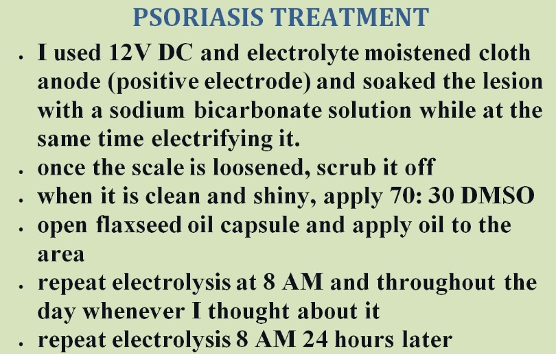 The best protocol, hands-down, is TET (transcutaneous electrotherapy) therapy. That is when you put a 5 V direct-current through the skin. It produces chlorine dioxide at the positive electrode inside the body.
