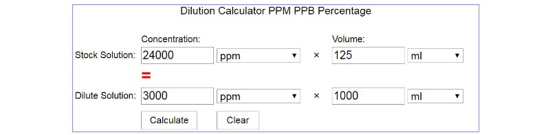 24K ppm CDS is 8 times stronger that 3K CDS, so divide by eight or dilute some of the 24K CDS down to 3K. endmemo.com/bio/dilution.php