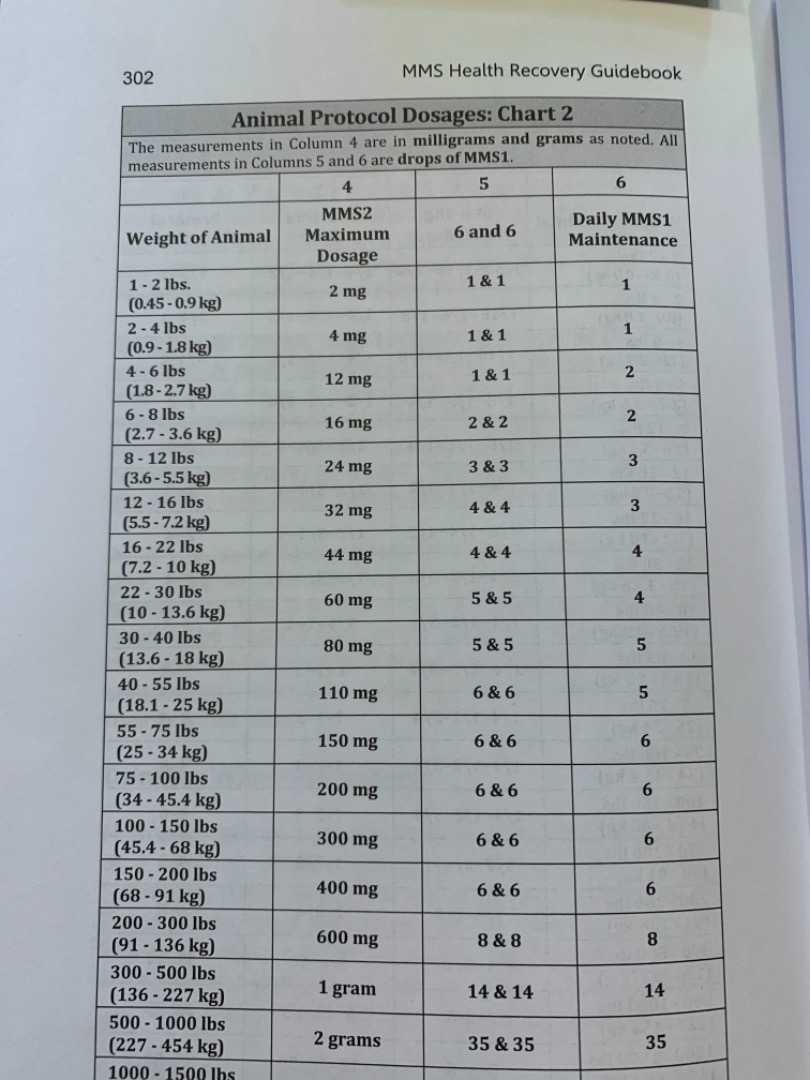 And yes, you can add unactivated MMS to its water dish and also squirt some diluted MMS1 (according to the charts) down its throat.