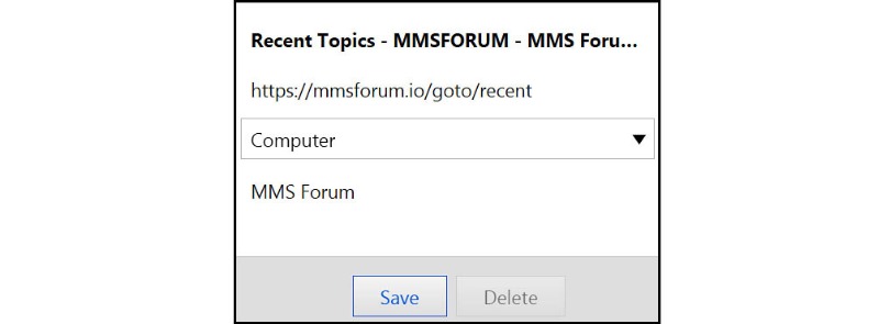 An ever better method is to pin the tab that has the forum address. Then, the next time you open the browser, just click on the forum tab and there it will be! You can see the MMS Forum tab noted in the screen shot below.