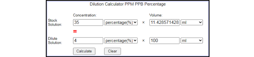 Add 11ml of 35% HCL to 89ml of water to get 100ml of 4% HCL,