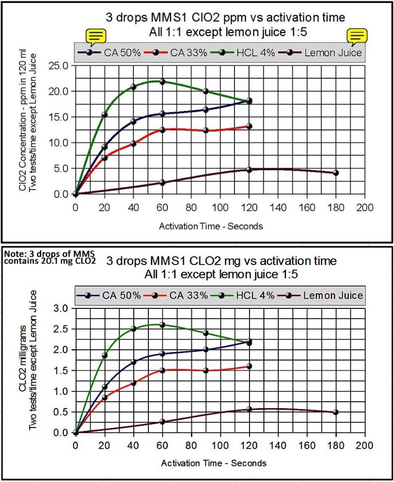 what is the ppm of 10 activated drops of mms1 in 30 ml of water?