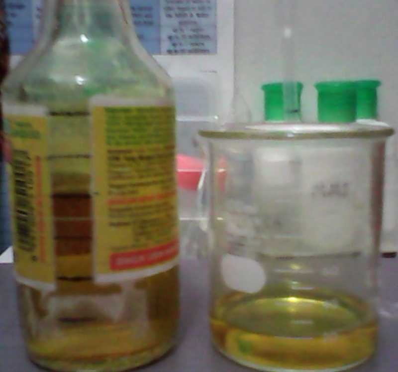 20ml poured into 100ml beaker to be added to the water to make my daily 8 servings of 3 drops per hour.