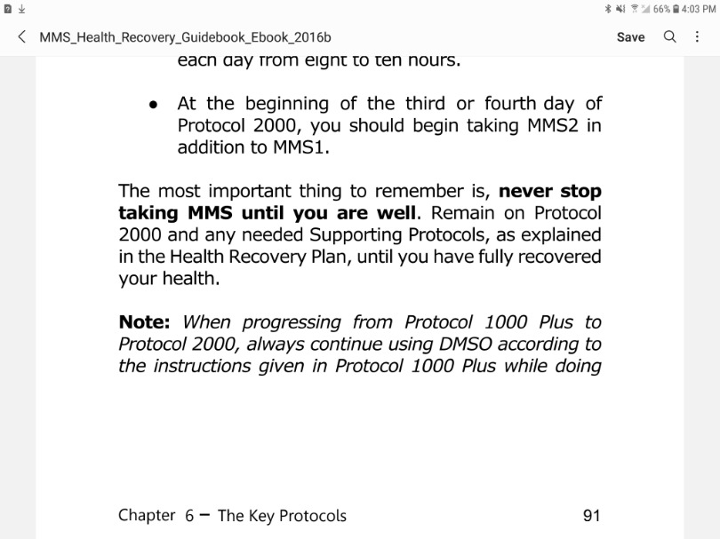 MMS1 or Activated MMS: chlorine dioxide (ClO2)